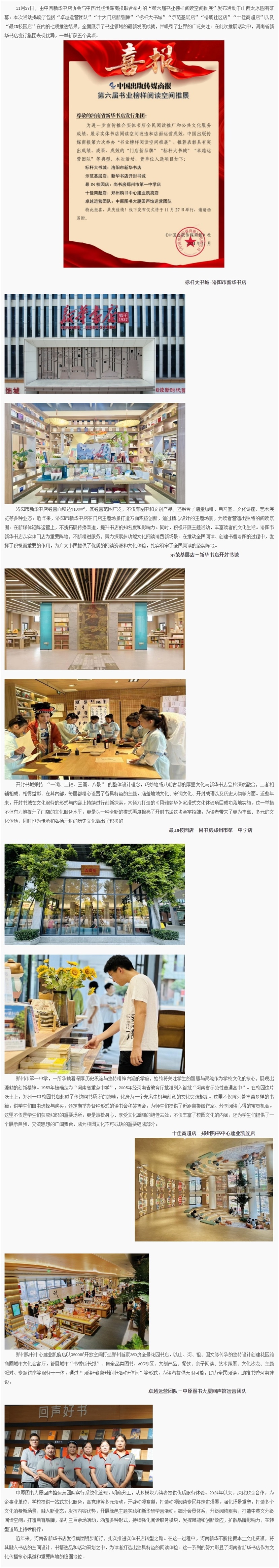 河南省新華書(shū)店發(fā)行集團(tuán)在“第六屆書(shū)業(yè)榜樣閱讀空間推展”活動(dòng)中榮獲多項(xiàng)榮譽(yù)稱(chēng)號(hào)
